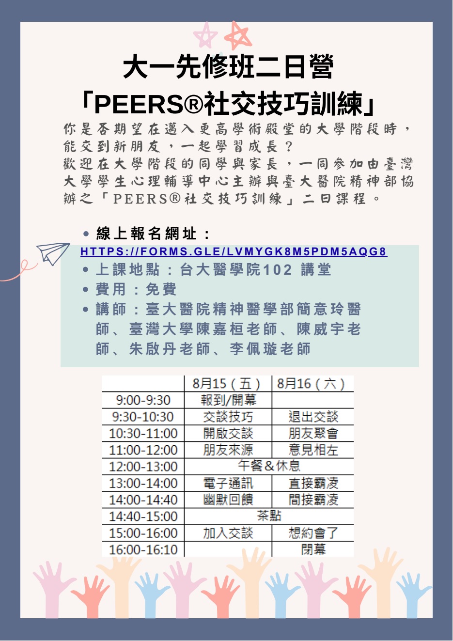 (三)「幸福甜甜圈-親職團體」帶領人:帶領成長團體,透過討論、經驗分享與交流,協助家長面對孩子的教養難題,提升家長親職效能。