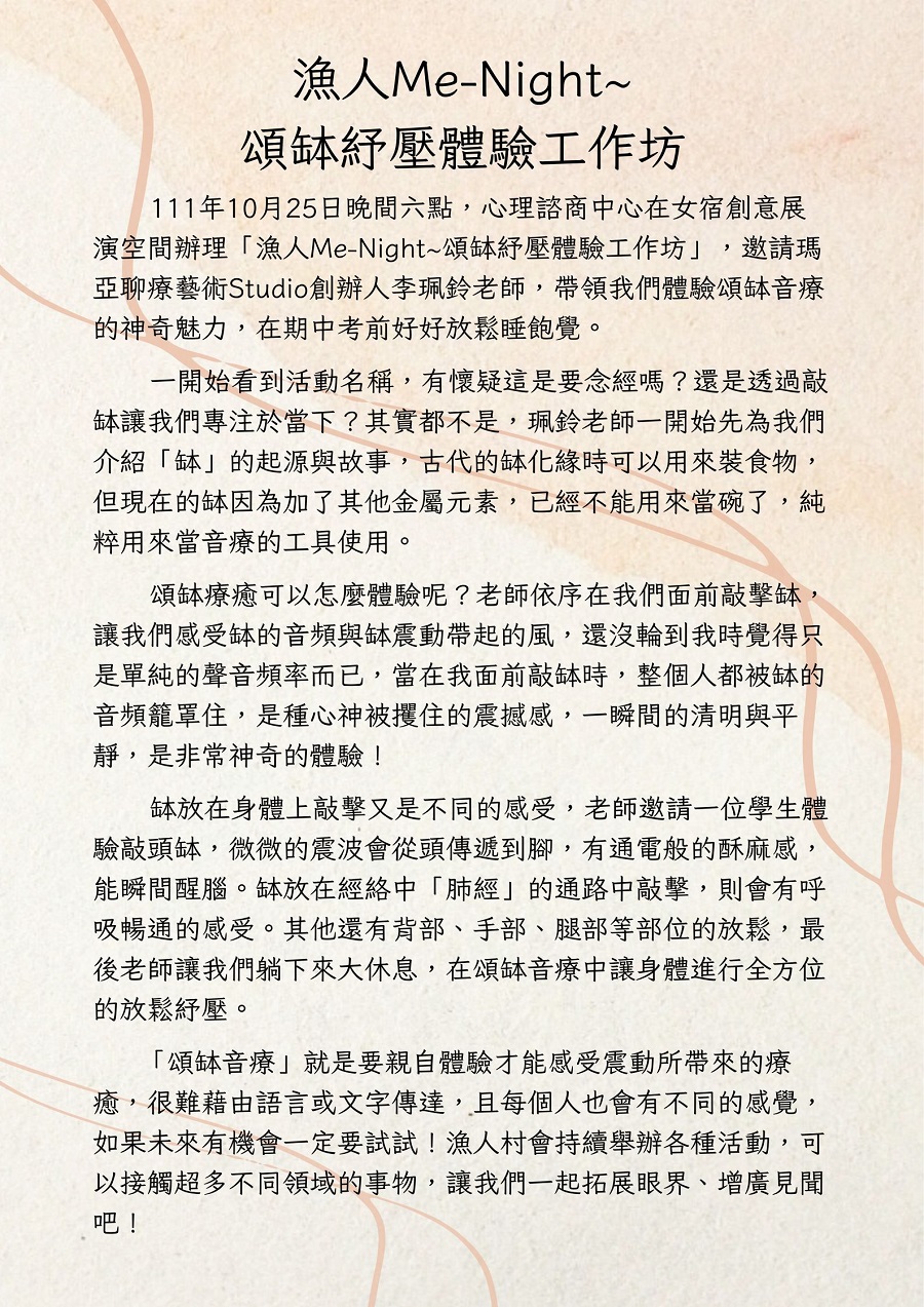 漁人ME-night~頌缽紓壓體驗工作坊
