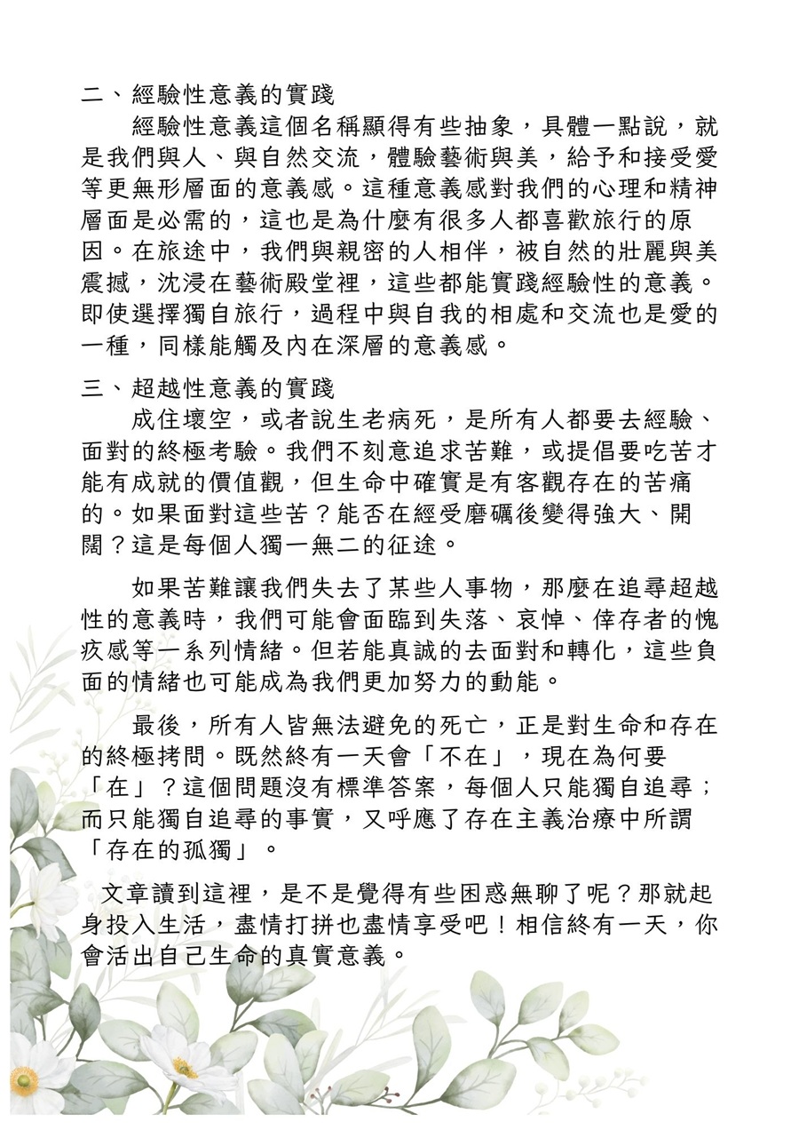 [2025/10/13] 【心理師撰文】如何活出生命的意義